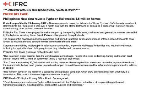The Philippines continued attempts to recover in the wake of Super Typhoon Rai (or Odette as it is locally known) that hit the island of Siargao on the 16th December 2021. Not two months have passed and the Philippines is at risk of a second typhoon hitting as tracked by Pagasa Weather Bureau.